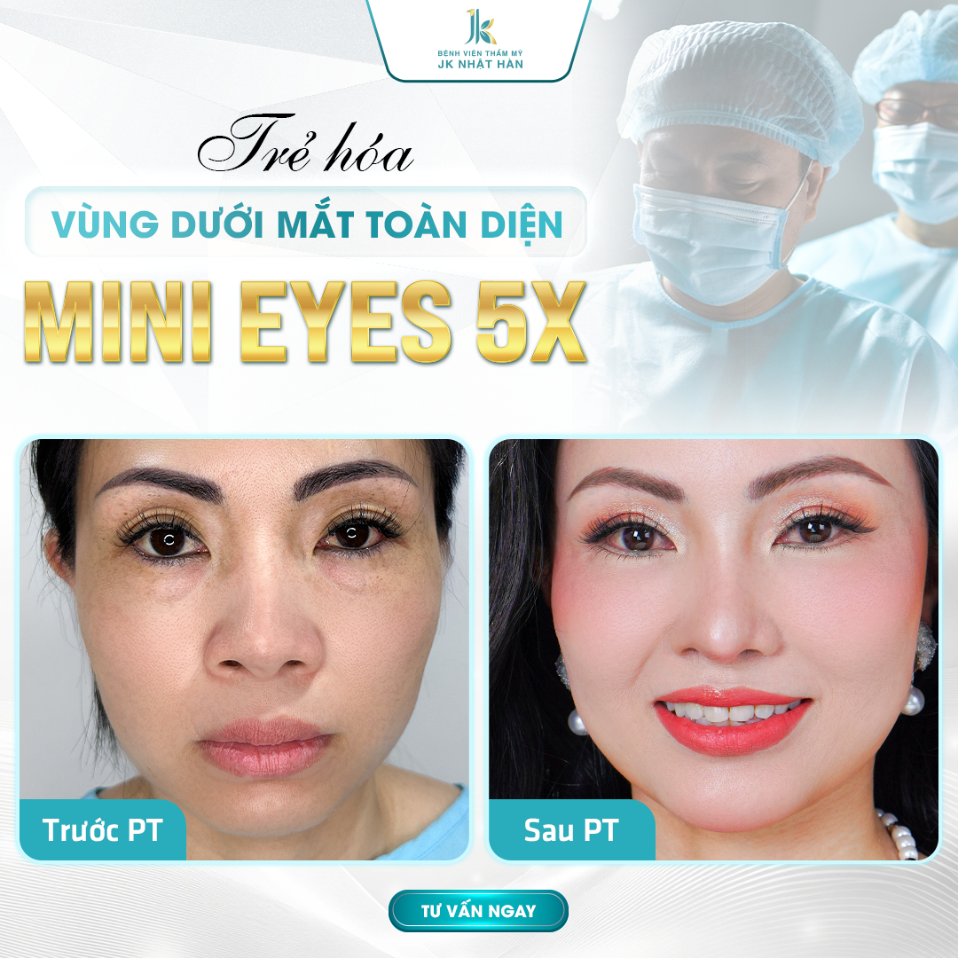 Giải pháp được thiết kế chuyên biệt cho vùng dưới mắt, giúp xóa bọng mỡ, giảm nếp nhăn, làm phẳng rãnh lệ mà không để lại sẹo, không lộ dấu thẩm mỹ. Mini Eyes 5X kết hợp năng lượng vi điểm và tinh chỉnh da mô mềm, giúp đôi mắt trẻ trung, tươi sáng chỉ sau một lần thực hiện.